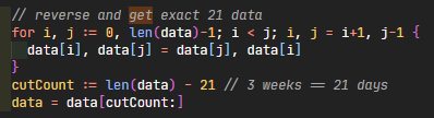 이렇게 우리가 원하는 데이터인 data []CoronaDailyData 를 만들어내었다.
