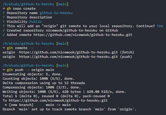 생성된 GitHub Repo: https://github.com/nicewook/github-to-heroku
