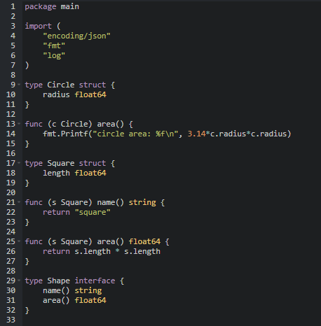- Outputter 라는 구조체가 있는데 이건 Shape라는 인터페이스를 만족하는 인스턴스를 인자로 받는다. 바로 Square 구조체가 이를 만족한다.