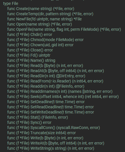 *os.File 타입이라고 명시한 것은, 스탠포드 나오고, 20대이면서, 수영도 잘하고, 맥주를 좋아하는 Go 개발자라고 말한 것이다.