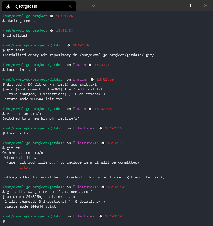 3. 그리고는 feature/a 라는 branch를 생성하고 (cb 는 commit -b의 alias)