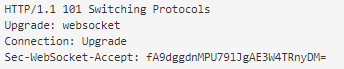 클라이언트가 원하는 회신은 HTTP 101 Switching Protocols 이다. 고 클라이언트가 요청한 Upgrade 인 websocket으로 프로토콜을 swithinng 한다는 것이다.