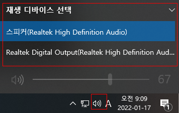 재생 디바이스 선택 메뉴와 장치 관리자에서 이렇게 표시가 된다