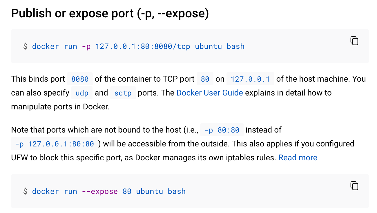 docker run -p 공식 문서: https://docs.docker.com/engine/reference/commandline/run/#publish-or-expose-port--p---expose