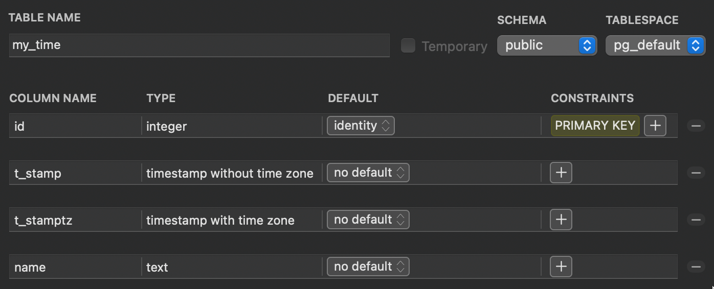 TStamp, TStamptz 두 필드 모두 +0900 KST 이다.