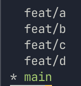출력한 branch 들 중에서 feat가 들어가는 항목들만 추려낸다