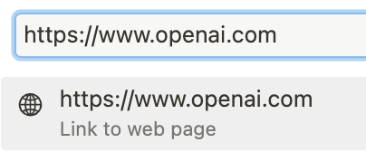 1. OpenAI 라는 Text를 쓰고 선택하면, 위와 같이 도구창이 뜨는데 그 중에서 Link를 클릭한다.