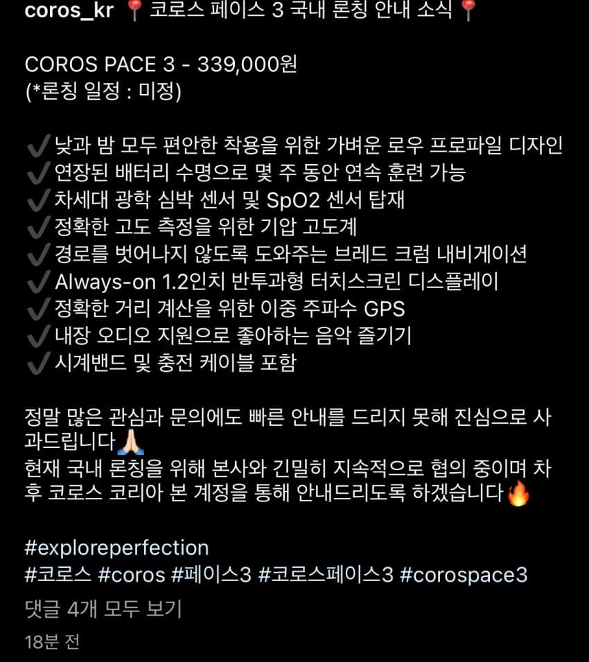코로스 페이스3: 듀얼밴드. 33.9만원.