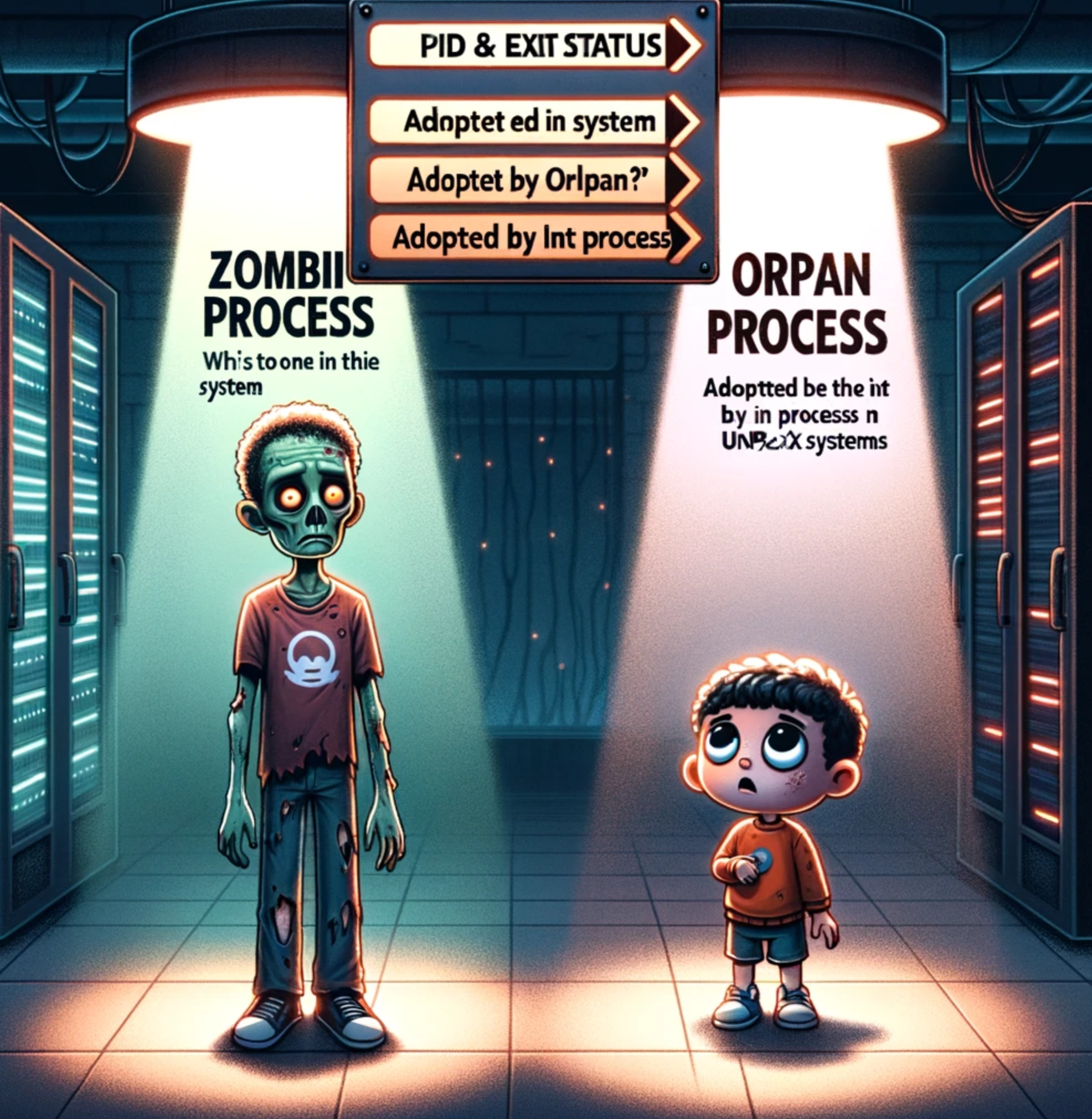 - 이 경우, 고아 프로세스는 일반적으로 init 프로세스(UNIX/Linux 시스템에서 PID 1)에 의해 입양된다.
