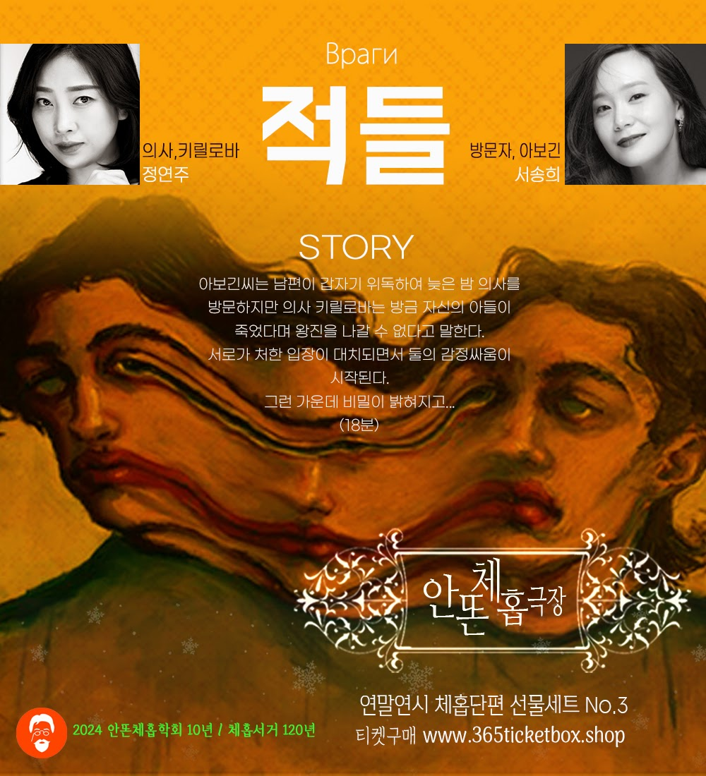 체호프를 원래도 좋아했었는데 2022년에 영화 드라이브 마이 카를 보고 유튜브에 체호프 공연이 있겠다 싶어 찾아본 것이 안똔체홉극장과의 인연이었는데 올해는 한 달에 한 번씩을 보러가려 한다.
