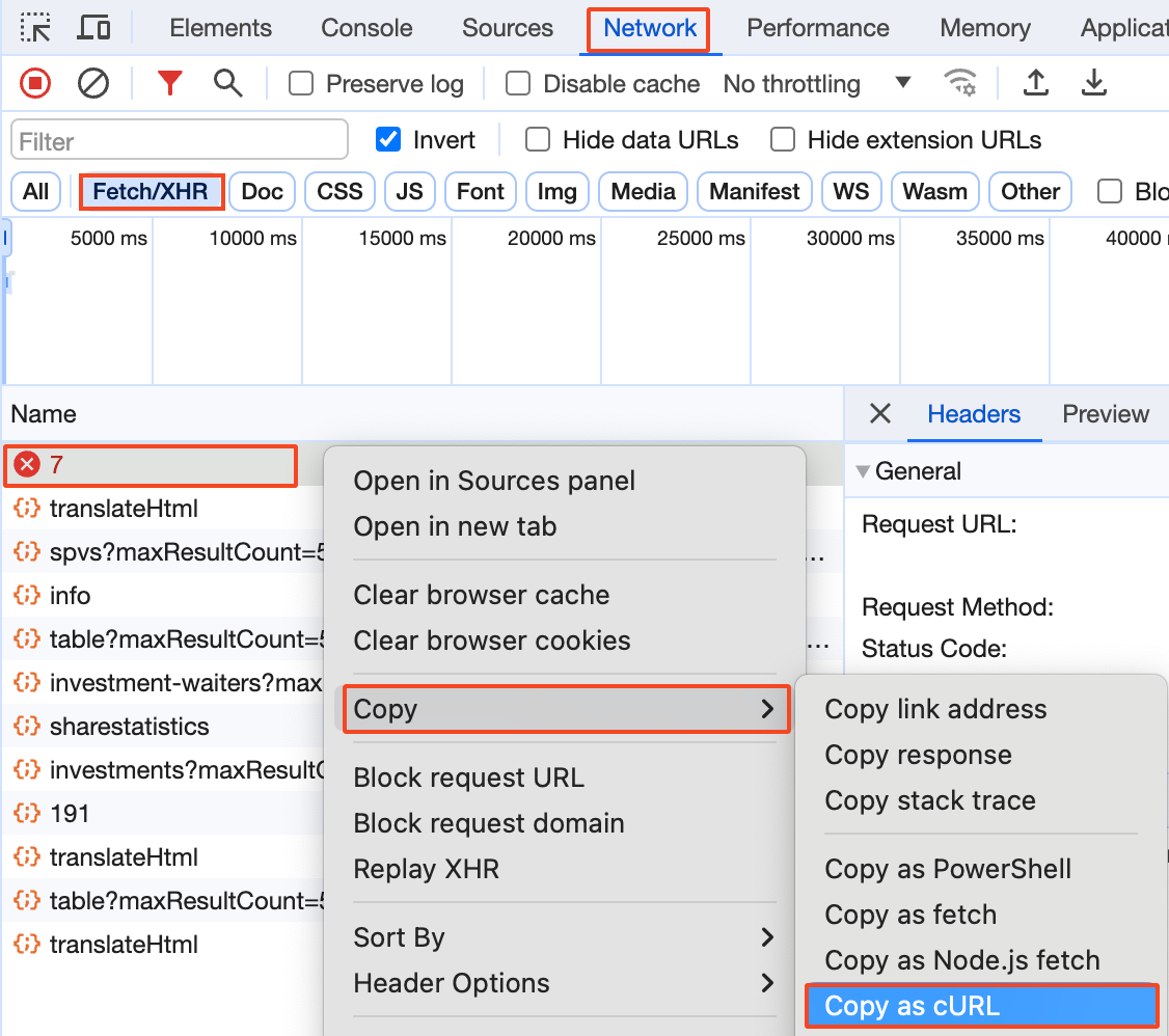 - 직접적으로 크롬 개발자 도구 내에서 요청을 수정하여 재전송하는 기능은 제한적이기에 요청 세부 정보를 "Copy as cURL" 로 복사하여 curl 명령어 형식으로 변환한 다음 요청을 수정한 후 터미널이나 커맨드 라인에서 재전송할 수 있다. 이 방법을 통해 다양한 파라미터, 헤더 등을 변경하여 테스트할 수 있습니다.