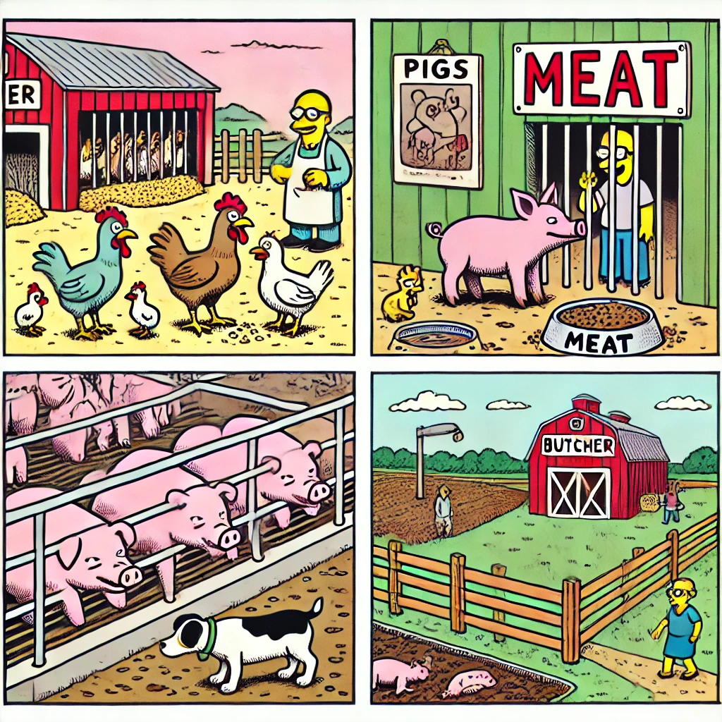일식집 주방에서 아르바이트를 한 적이 있다. 하루에 수 십, 수 백의 식사를 준비해서 내어가다 보면 그게 음식으로 안보이는 경험을 했다. 닭, 돼지, 개를 키우고 고기라는 상품을 제공하는 과정전반은 매우 효율적이고 합리적이었다. 자본주의였다. 혁명을 하자거나 나은 대안을 말할 능력은 아니지만 문제의 핵심은 자본주의라는 것은 확실히 알 수 있었다.
