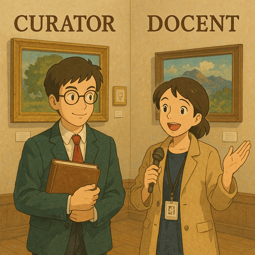 큐레이터와 도슨트라는 이야기가 나오는 유튜브를 보는데 둘 다 알고 있는 직업이지만 정확히 설명을 할 수 없는 나 자신을 확인하고 재빠르게 ChatGPT에게 물어보았다.