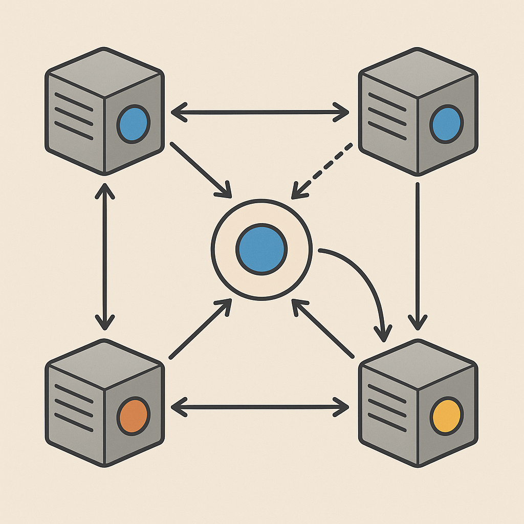 가십 프로토콜은 노드 간 정보를 퍼뜨릴 때 사용하는 방식으로, 사람들 사이의 “가십(소문)”처럼 무작위 이웃에게 정보를 전달한다.