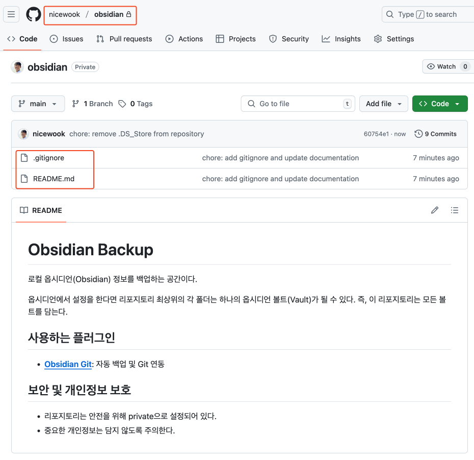 Private 으로 만들고, 옵시디언에는 중요한 개인정보는 담지 않는 것으로 하자(권장).