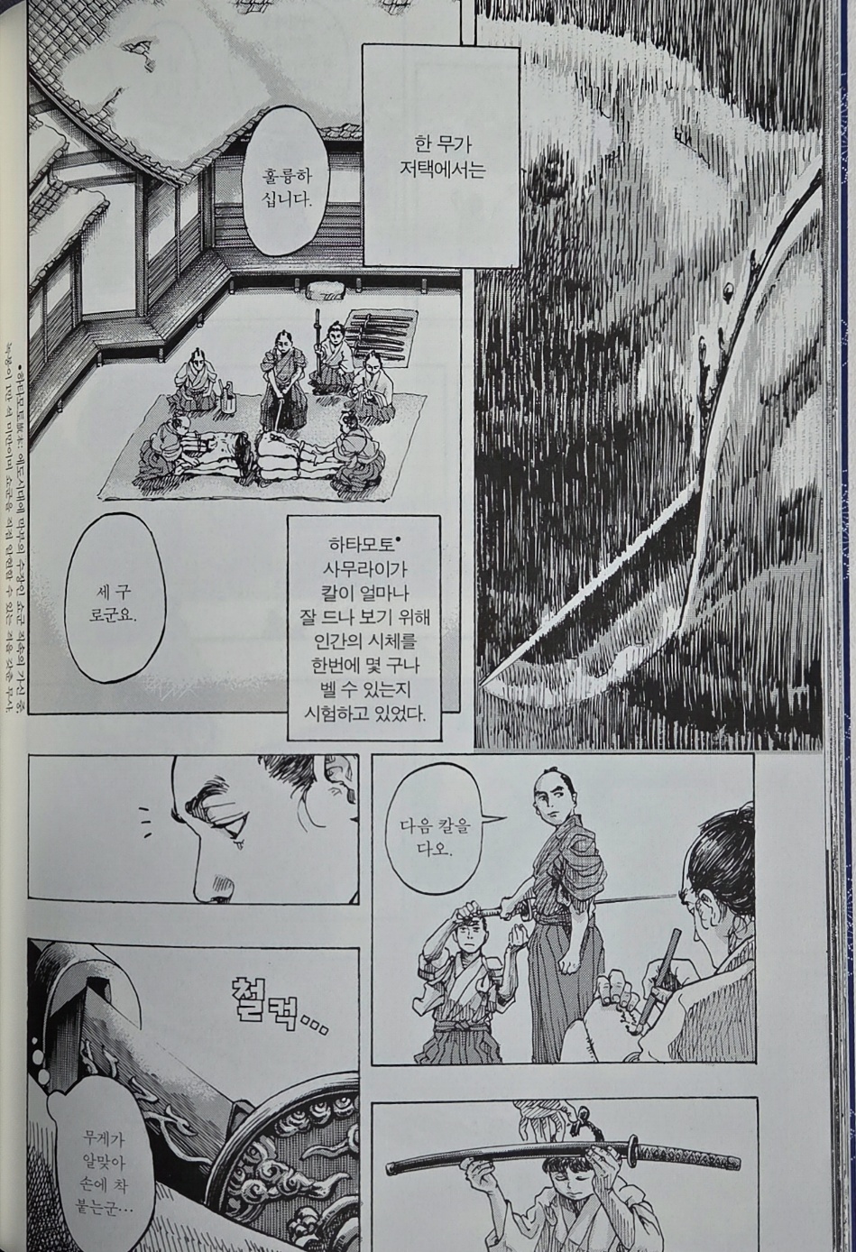 - 그러면서도 가까워지기 힘든, 가까워지기 싫은 일본스러움을 또 목격한다. 칼이 얼마나 잘 드는지를 보려고 사람의 시체를 쌓아서 벤다니.