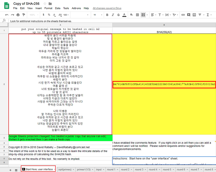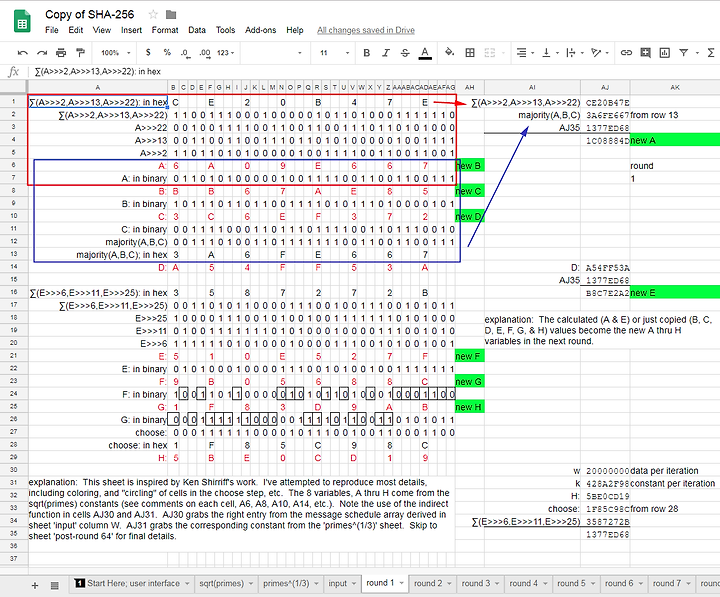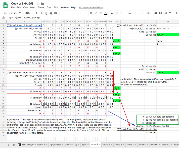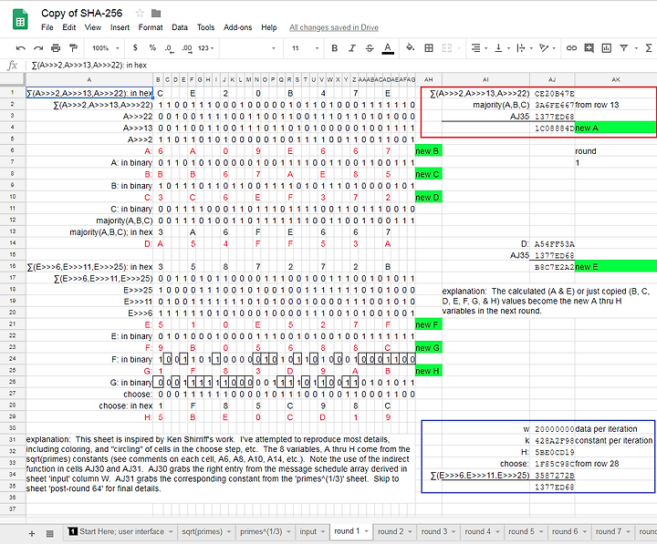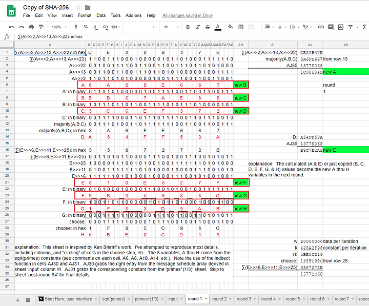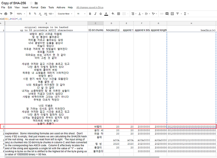 - SHA-256 을 단계별로 구현해둔 구글시트 https://goo.gl/Sn8x2r